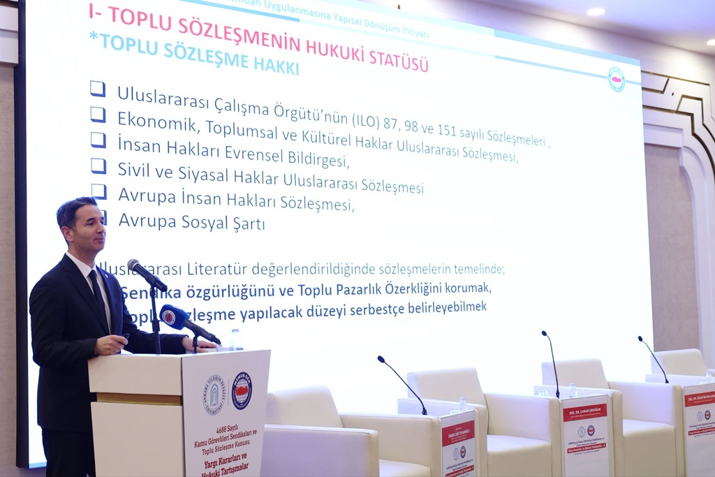 Sempozyumun kapanış bölümünde konuşan Memur-Sen Genel Başkanı Ali Yalçın, iki gün boyunca yapılan tartışmaların, 4688 sayılı Kanun’un uygulanmasında karşılaşılan sorunlarını görünür kıldığını belirterek, özellikle grev hakkı, uyuşmazlık, çözüm mekanizmaları ve toplu sözleşme sisteminin işleyişine ilişkin önemli tespitlerin ortaya konulduğunu ifade etti.