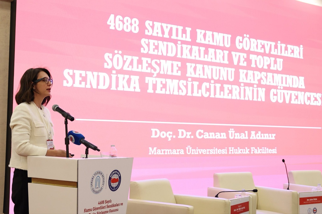 Sempozyumun beşinci ve son oturumu, Anayasa Mahkemesi Üyesi Doç. Dr. Recai Akyel’in başkanlığında gerçekleştirildi. “Sendikal haklar ve güvenceler, sendikal örgütlenme özgürlüğü” başlığıyla düzenlenen oturumda, AYBÜ Hukuk Fakültesi öğretim üyesi Dr. Esra Özen, ILO normları çerçevesinde kamu görevlilerinin grev hakkı ve sınırlarına ilişkin değerlendirmelerde bulundu. Marmara Üniversitesi Hukuk Fakültesi öğretim üyesi Doç. Dr. Canan Ünal Adınır, sendika temsilcilerinin güvencelerini ele aldı. Anayasa Mahkemesi Raportörü Gülsüm Gizem Gürsoy ise Anayasa Mahkemesi kararları kapsamında sendikal güvencelere ilişkin sunumunu gerçekleştirdi.