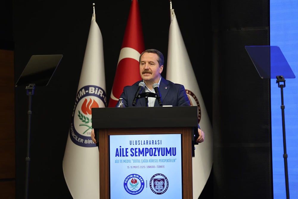 Memur-Sen Genel Başkanı Ali Yalçın ile Aile ve Sosyal Hizmetler Bakanı Mahinur Özdemir Göktaş, Eğitim-Bir-Sen ve Ankara Sosyal Bilimler Üniversitesi iş birliğinde düzenlenen “Aile ve Medya: Dijital Çağda Küresel Perspektifler Uluslararası Aile Sempozyumu”nun açılış törenine katıldı. Burada konuşan Yalçın, “Aile bozulursa insan bozulur, aile bozulursa toplum bozulur, aile bozulursa insanlık yok olur” dedi.