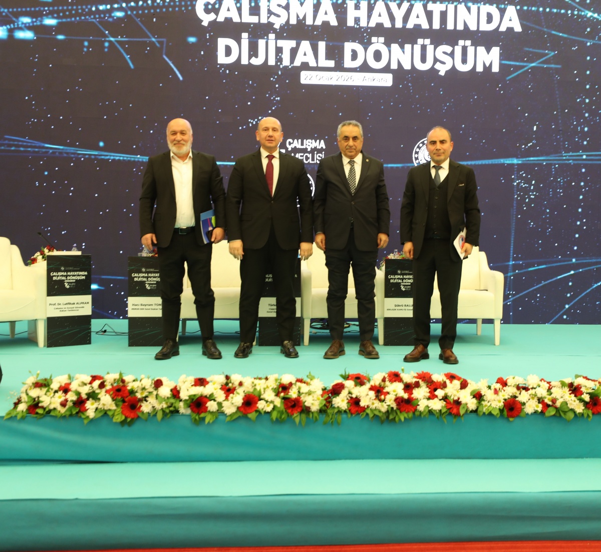 Gerçekleştirilen konuşmaların ardından düzenlenen “Çalışma Hayatı ve Dijital Dönüşüm” adlı panelde söz alan Ali Yalçın, dijital dönüşümün yalnızca özel sektörde değil, kamu yönetimi ve kamu hizmetlerinde de etkisini güçlü biçimde hissettirdiğini ifade etti. Yalçın, bilişim sistemleri ve e-uygulamalarla kamu hizmetlerinin hızlandığını, hizmet kalitesi ve çeşitliliğinin arttığını belirtti.