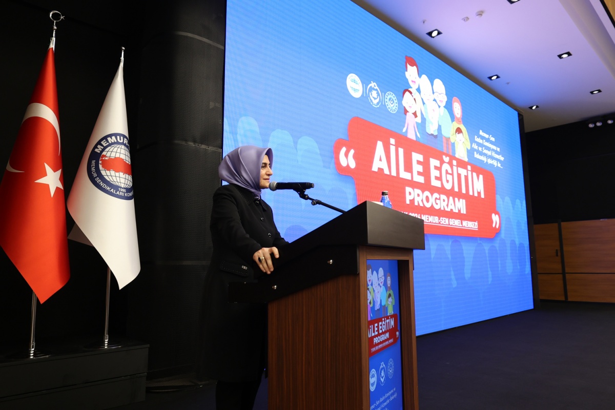 Memur-Sen Kadın Komisyonu Başkanı Sıdıka Aydın ise konuşmasında, modern çağın hız ve haz sarmalı içinde aile yapısının ciddi tehditlerle karşı karşıya kaldığını belirterek, ailenin yalnızca özel bir alan değil; toplumun dengesi, çalışma hayatının huzuru ve geleceğin teminatı olduğunu ifade etti.