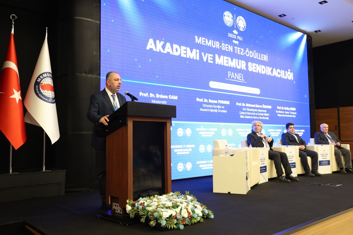 Ödül töreninin ardından “Akademi ve Memur Sendikacılığı” başlıklı panel gerçekleştirildi. Moderatörlüğünü Prof. Dr. Erdem Cam’ın yaptığı panelde; akademi ile sendikacılık arasındaki ilişki, iş birliği imkânları ve memur sendikacılığının akademik boyutu ele alındı.