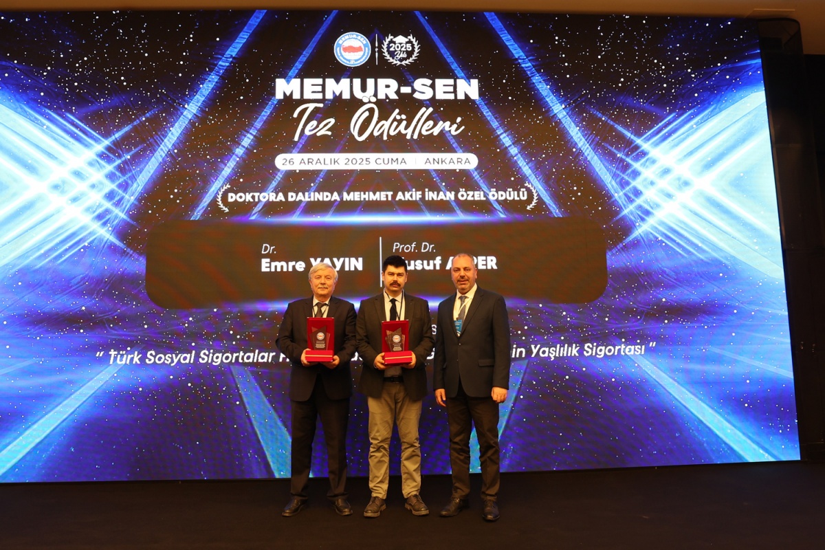 Doktora dalında Mehmet Akif İnan Özel Ödülü, Bursa Uludağ Üniversitesi’nden Dr. Emre Yayın’a verildi. Prof. Dr. Yusuf Alper danışmanlığında hazırlanan “Türk Sosyal Sigortalar Hukukunda Kamu Görevlilerinin Yaşlılık Sigortası” başlıklı tez ödül aldı.