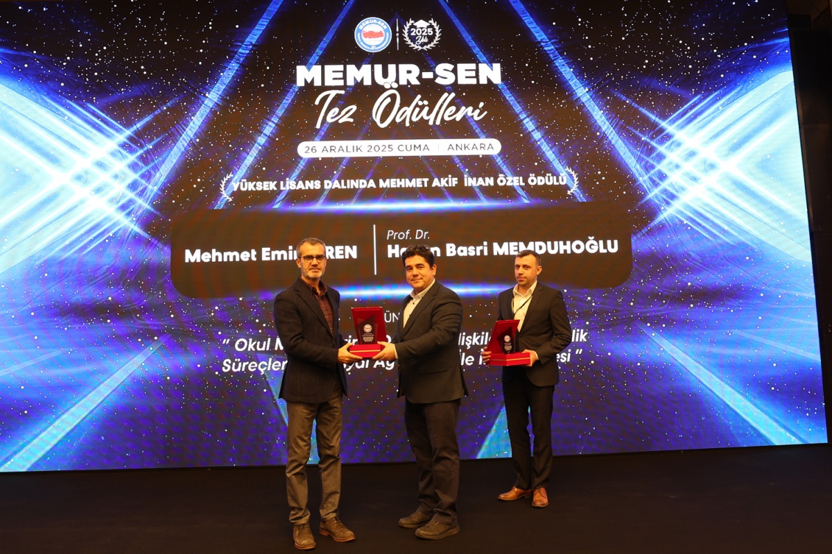 Yüksek lisans dalında Mehmet Akif İnan Özel Ödülü, Siirt Üniversitesi’nde hazırlanan “Okul Müdürlerinin Danışma İlişkileri ile Liderlik Süreçlerinin Sosyal Ağ Analizi ile İncelenmesi” başlıklı teziyle Mehmet Emin Ören’e verildi. Tezin danışmanlığını Prof. Dr. Hasan Basri Memduhoğlu üstlendi.