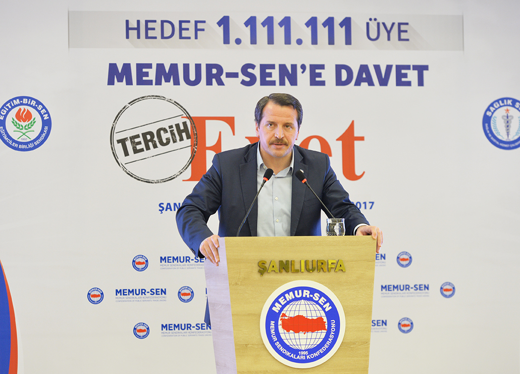 Memur-Sen il temsilcisi İbrahim Coşkun, elde ettikleri kazanımlar ve verdikleri mücadele ile Türkiye ve bölgenin en büyük emek örgütü olduklarını ifade etti. Coşkun, “Türkiye’nin ve bölgenin en büyük emek hareketi, kamu görevlilerinin yetkili sendikası Memur-Sen olarak her kurumda her kuruluşta varız. Dünyanın neresinde inleyen bir yürek varsa oraya insanlık taşıyoruz. Anadolu’nun umudunu artırıyor, hayallerini güçlendiriyoruz. Daha özgür ve güçlü bir Türkiye için, ülkemiz ve milletimiz için, daha adil bir dünya için Memur-Sen’i daha da büyütmeliyiz. Bu bilinçle ‘Memur-Sen’e Davet’ seferberliği başlattık. Sendikaların üye sayılarının güncelleneceği Mayıs ayına kadar hedefimiz 1 Milyon 111 bin 111 üyeye ulaşmaktır” dedi.