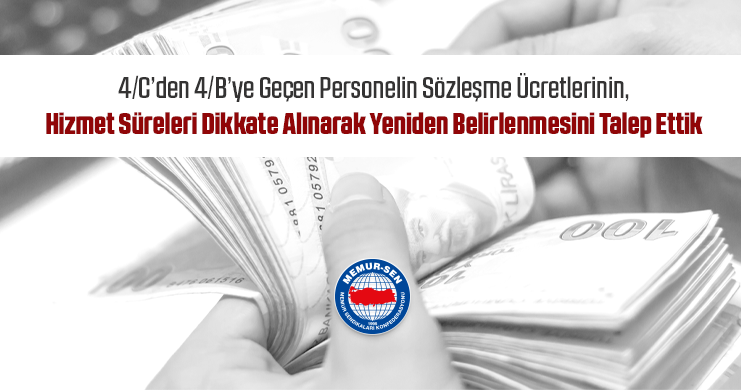 4/C’den 4/B’ye Geçen Personelin Sözleşme Ücretlerinin, Hizmet Süreleri Dikkate Alınarak Yeniden Belirlenmesini Talep Ettik