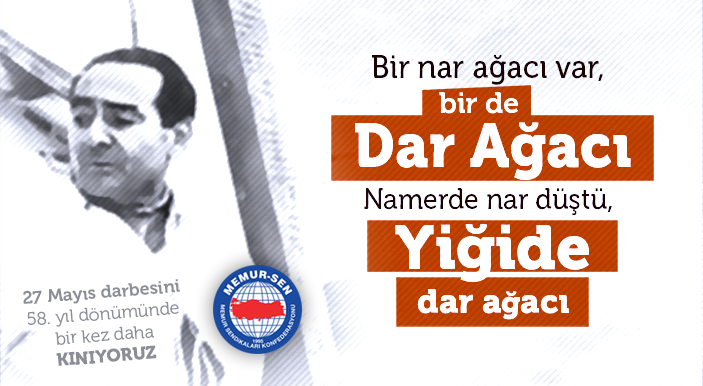 Türkiye'ye büyük acı yaşatmaya kodlanan askeri vesayetin sahipleri, yalanlar ve iftiralarla milli iradeyi kafese aldı, en büyük insanlık suçunu işleyerek 27 Mayıs’tan sonra kurulan düzmece mahkeme, Başbakan Adnan Menderes, Dışişleri Bakanı Fatin Rüştü Zorlu ve Maliye Bakanı Hasan Polatkan’ı darağacına gönderdi, Cumhuriyeti vesayet rejimine dönüştürdü.