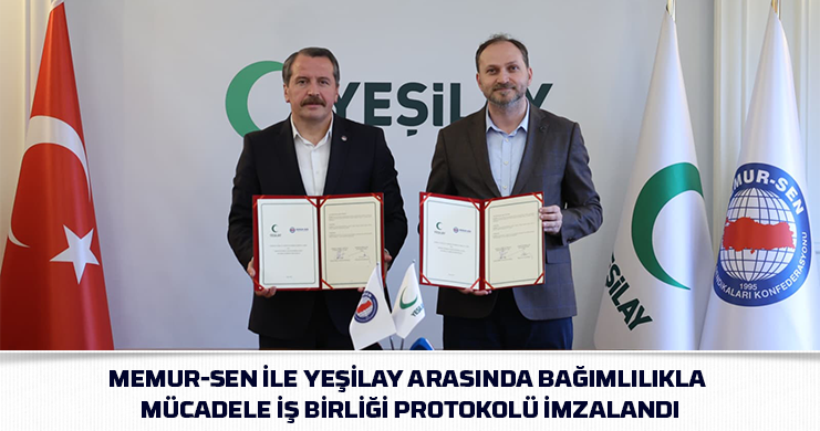 Memur-Sen ile Türkiye Yeşilay Cemiyeti arasında, bağımlılıkla mücadelede farkındalık ve bilinçlendirme çalışmalarını güçlendirmek amacıyla iş birliği protokolü imzalandı.