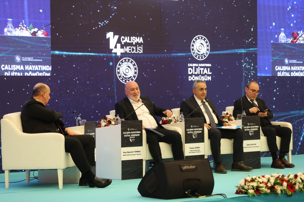 Memur-Sen Genel Başkanı Ali Yalçın ve Genel Başkan Yardımcısı Hacı Bayram Tonbul, Çalışma ve Sosyal Güvenlik Bakanlığı’nın düzenlediği 14 Çalışma Meclisi’ne katıldı. Programda konuşan Yalçın, dijital dönüşümün çalışma hayatında kaçınılmaz bir gerçek olduğunu belirterek, bu sürecin çalışan haklarını, sosyal adaleti ve insan onurunu koruyan bir anlayışla yönetilmesi gerektiğini vurguladı. Yalçın, “Asıl mesele dijitalleşmeye hazırlık değil, dijitalleşmeye yön vermektir” dedi.