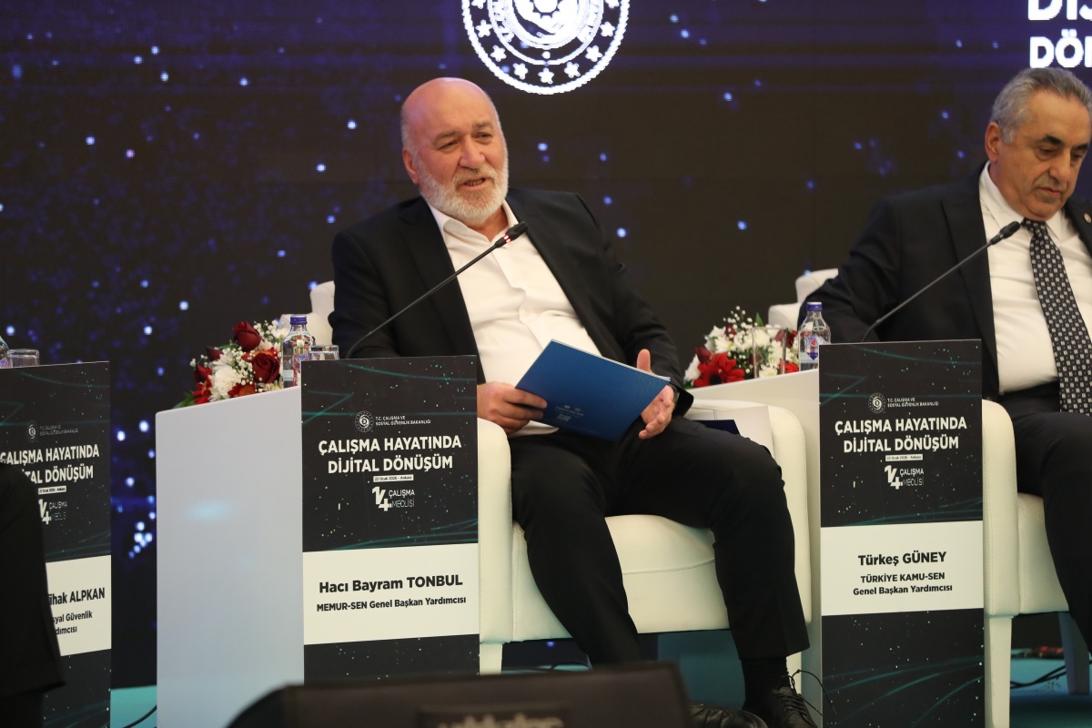 Dijital dönüşüm sürecinde emeği ve insan onurunu merkeze alan, sosyal adaleti ve demokratik katılımı güçlendiren bir anlayışın esas alınması gerektiğini vurgulayan Hacı Bayram Tonbul, Memur-Sen’in bu doğrultuda her türlü yapıcı iş birliğine hazır olduğunu ifade etti.