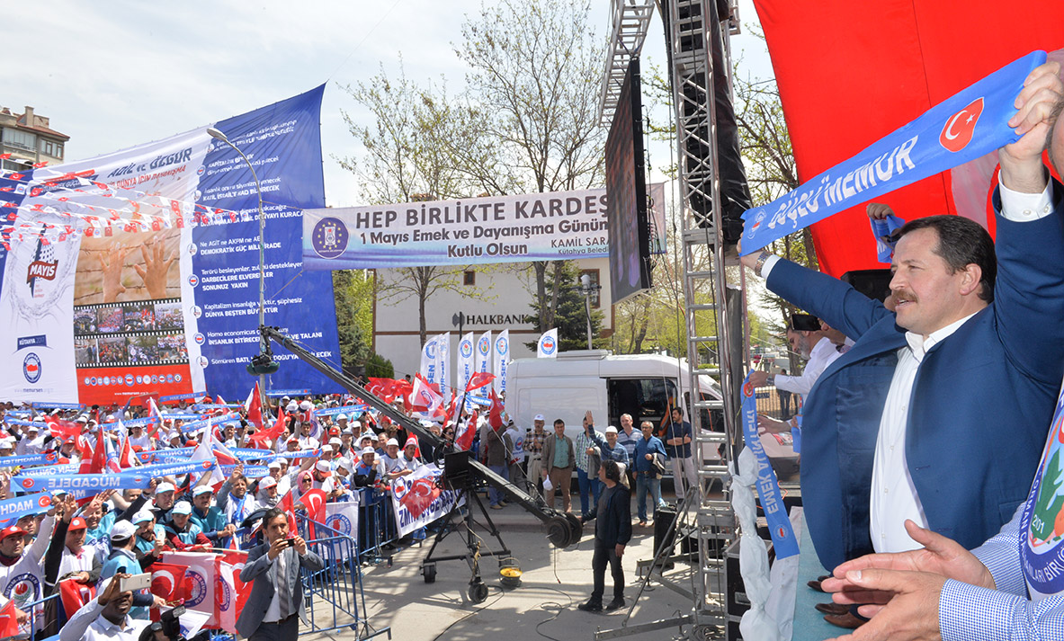 Türkiye`nin en büyük emek hareketi olan Memur-Sen, 1 Mayıs Emek ve Dayanışma Günü`nü tarihte, ilk toplu sözleşmenin yapıldığı yer olan Kütahya’da kutladı. On binlerce kişinin katıldığı 1 Mayıs kutlamaları Kur'an-ı Kerim tilaveti ile başladı, talepler Kütahya Zafer Meydan’ından haykırıldı, emek, kardeşlik, dayanışma ve birlik mesajları verildi.