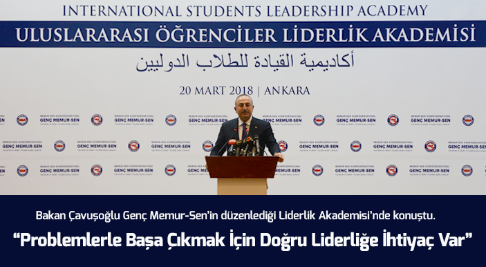 Memur-Sen'in gençlik teşkilatı Genç Memur-Sen tarafından organize edilen, “Uluslararası Öğrenciler Liderlik Akademisi"nin ilk dersi Dışişleri Bakanı Mevlüt Çavuşoğlu, Memur-Sen Genel Başkan Yardımcısı Günay Kaya, Genç Memur-Sen Başkanı Eyüp Beyhan sivil toplum kuruluşlarının gençlik teşkilatları ve çok sayıda gencin katılımıyla Başkent Öğretmenevi'nde gerçekleştirildi.