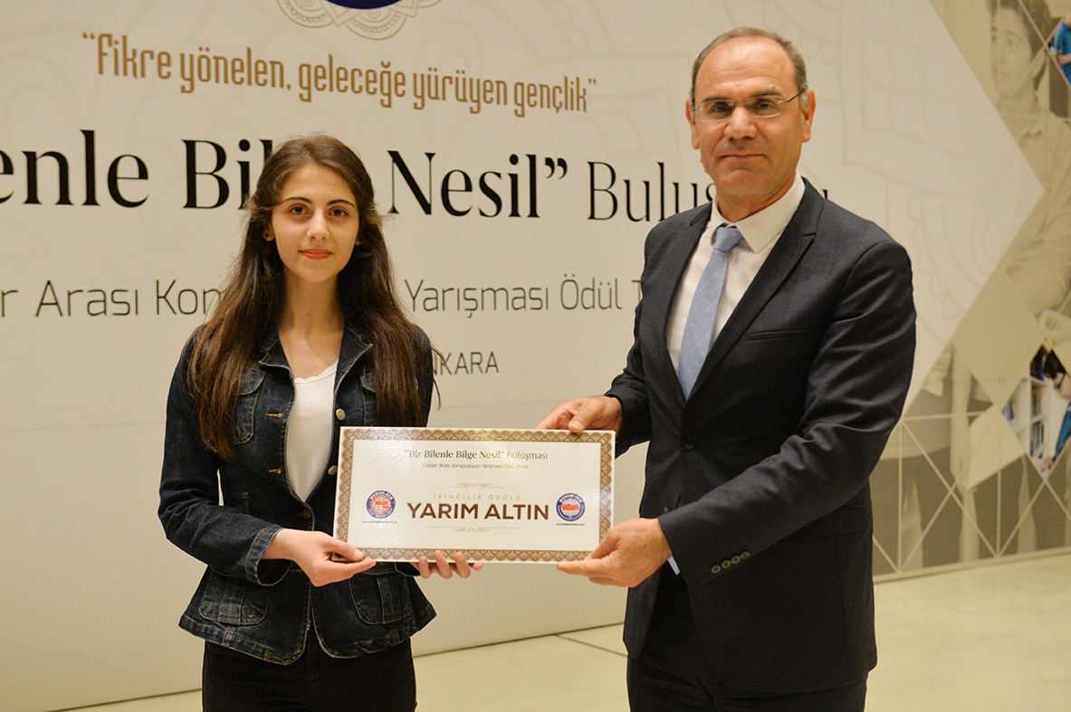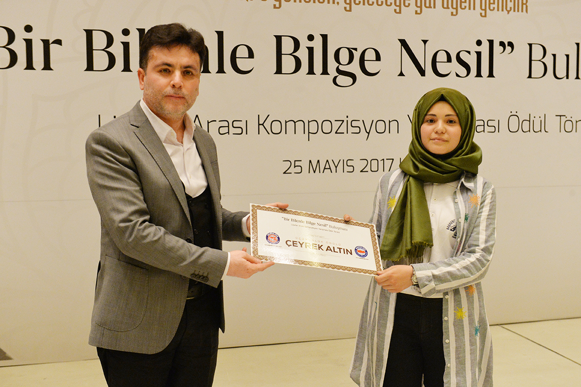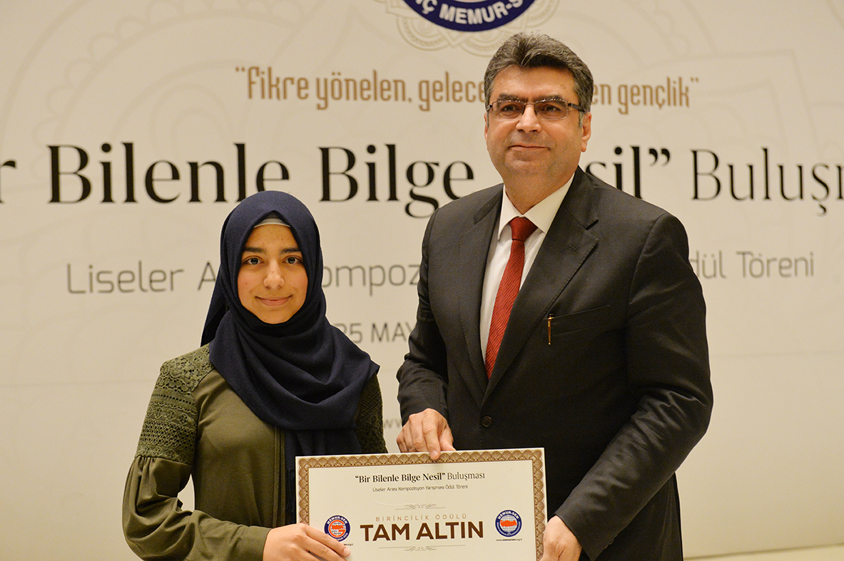 Genç Memur-Sen’in hayata geçirdiği “Bir Bilenle Bilge Nesil” projesinin ödül töreni Memur-Sen Genel Başkanı Ali Yalçın, Milli Eğitim Bakan Yardımcısı Orhan Erdem, Ankara İl Milli Eğitim Müdürü Veda Bardakçı, Genç Memur-Sen Genel Başkan’ı Eyüp Beyhan, projeye dahil olan öğretmenler, öğrenciler ve aileleri katıldı. Çok sayıda davetlinin katıldığı ödül töreninde birinci olan kompozisyonlar genç yazarları tarafından okundu.