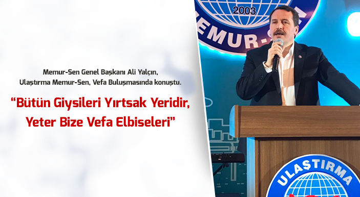 Memur-Sen Genel Başkanı Ali Yalçın, “Teşkilatımızın en kıymetli noktası, kurucu genel başkanımız rahmetli Akif İnan’ın, ‘Bütün giysileri yırtsak yeridir, yeter bize vefa elbiseleri’ deyişindeki gibi, ‘Vefakar’ oluşumuzdur. Kimseyi ötekileştirmeden, emeği önceleyerek hareket edişimizdir” dedi.