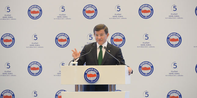 Memur-Sen ve üyelerine teşekkür eden Davutoğlu, “katsayı ve başörtüsü zulmü”, 27 Nisan e-muhtırası, parti kapatma davaları ve Taksim Gezi Parkı olaylarıyla provokasyon yapıldığında da Memur-Sen’in sesiz kalmadığını söyledi.