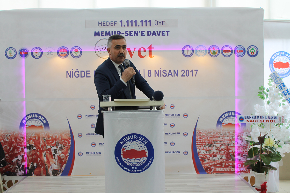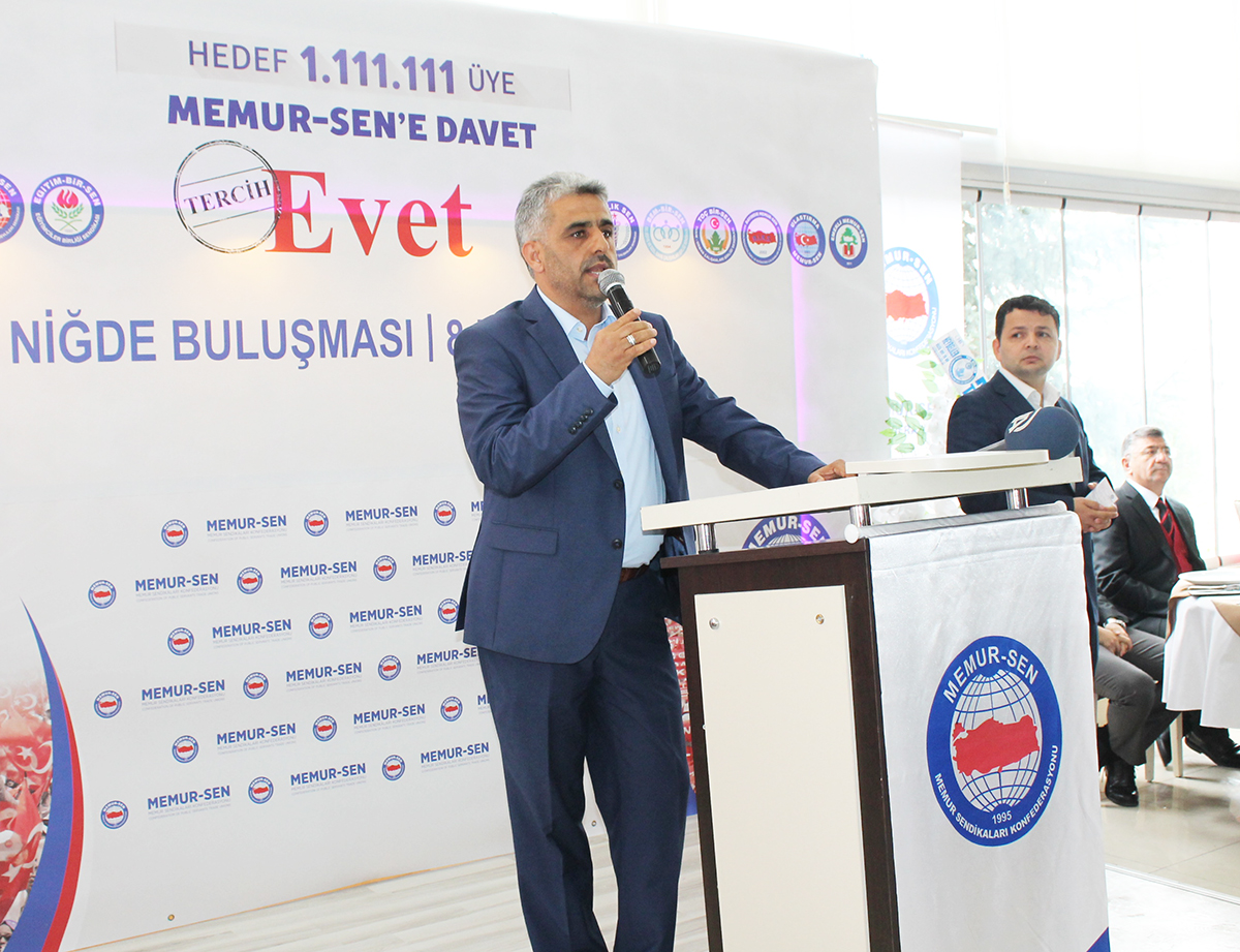 Niğde Memur Sen İl Temsilcisi Hasan Orhan ise, “Memur-Sen, sendikacılıkta zirvedir. Memur-Sen, milletle beraberdir. Millet iradesini koruma derdindedir. Biz, emeğe, alın terine değer verilmesini, ekmeğimizin artmasını, saygın iş ve saygın emek konusunda ülkemizin dünya liginde zirveye çıkmasını istiyoruz" şeklinde konuştu.