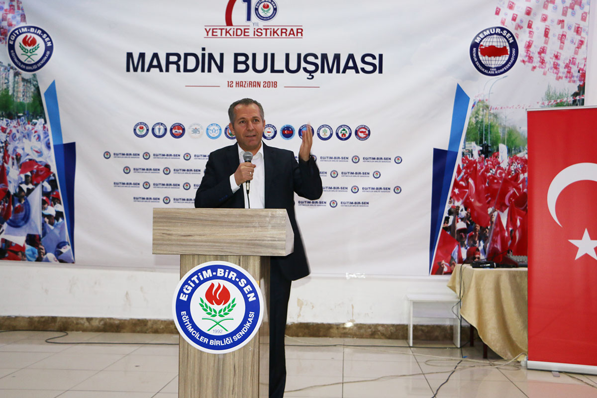 Mardin’de teşkilata seslenen Memur-Sen Genel Başkan Yardımcısı Mehmet Emin Esen, 24 Haziran seçimlerine yönelik değerlendirmelerde bulundu. Esen, “Kazanımlarımıza gözümüz gibi bakamazsak, gözümüzün yaşına bakmazlar. Biliyoruz. Bizim derdimiz; 16 Nisan’da kazandıklarımızı 24 Haziran’da kaybetmemek. Oylarımız; FETÖ’ye saadet, PKK’ya memnuniyet, Suriyeli kardeşlerimize mağduriyet, Kudüs’e, Mescid-i Aksa’ya ihanet, Emperyalistlere cesaret, olmasın” dedi.