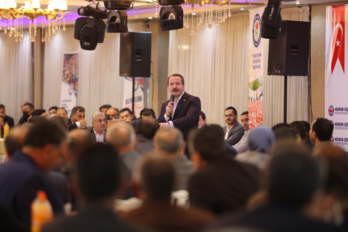 Yalçın, 6. Dönem Toplu Sözleşme ile yıllardır keşmekeşe dönen sözleşmeliler ve 3600 ek gösterge konularının da çözüme kavuşması adına kararlar alındığına dikkat çekerek, “Bakanlık ile yetkili sendika oluşturacağı komisyonlarla her iki konuyu da 2022 yılı içerisinde görüşerek karara bağlayacak. 3600 ek gösterge konusu çözüme kavuştuğunda emekli ikramiyelerinde 30 bin liraya varan artışlar olacak. Bu toplu sözleşmede genele ilişkin ciddi kazanımlar elde ettik. Bunun yanında hizmet kollarında da toplam 7 milyar TL’yi bulan kazanımlarımız mevcut. Bunlar bize durduk yere verilmedi. Her kazanımın altında ciddi bir mücadele ve alın teri mevcut. Elde edilen yeni kazanımlarla birlikte üye sayımızda da ciddi artışlar söz konusu. Büyüyerek gücüne güç katan Memur-Sen ailesi gelecekte de kamu görevlileri adına yeni kazanımlar oluşturmak adına elinden gelen gayreti gösterecektir” dedi.