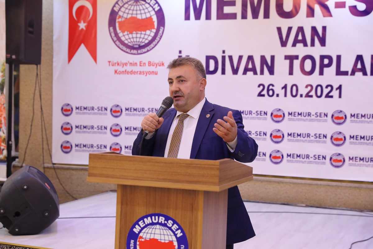 Memur-Sen İl Divanı’na katılan Genel Başkan Ali Yalçın üyelere seslendi. Mutabakatla sonuçlanan 6. Dönem Toplu Sözleşme kazanımlarını anlatan Yalçın, gerek genele gerekse hizmet kollarına ilişkin elde edilen önemli kazanımlarla birlikte tarihi bir süreci geride bıraktıklarına vurgu yaptı. Toplu sözleşmede büyük bir mücadele vererek sendikalı ile sendikasız arasında bir makas oluşturduklarını söyleyen Yalçın, “ Yıllardır toplu sözleşme masasında ve sahada güçlü bir mücadele örneği sergiliyoruz. Son toplu sözleşme ile 92 yeni kazanım daha elde ederken, örgütlüler adına %30 ile %40,22 arasında bir oransal artışa imza attık. Bunun yanında toplu sözleşme ikramiyesi 2022 yılı için 400 lira olacak şekilde anlaşmaya vardık. Bizim toplu sözleşme masasında gece gündüz demeden çalışarak, emek vererek, mücadele ederek elde ettiğimiz kazanımları görmezden gelen ve ‘Sendika ne işe yarıyor’ diyen bir kesim vardı. Toplu sözleşme ikramiyesini örgütlüler adına artırarak bu sorunun bir nebze olsun önüne geçmiş bulunmaktayız. Bu rakam ilerleyen yıllarda daha da artacak. Örgütlüler ile örgütlü olmayanlar arasındaki makasın daha da açılması için çalışmalarımızı sürdürmeye devam edeceğiz” diye konuştu..jpg)