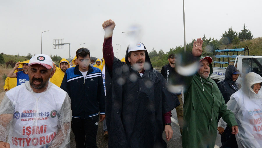 Cumartesi günü CHP Genel Merkezi önünde tamamlanması planlanan Emek ve Adalet Yürüyüşü boyunca hassasiyetle hareket ettiklerini belirten Arslan, “HAK-İŞ olarak, Hizmet-İş Sendikamız olarak, işten çıkarılan emekçiler olarak birçok konuda hassasiyetli davrandık. Sağduyuyu hakim kıldık. Yürüyüşümüz boyunca halkımıza, işyerlerine, güvenlik kuvvetlerine, başkalarına, bizim gibi düşünmeyenlere, bize zulmedenlere dahi asla hakaret etmedik, aşağılamadık. Dimdik durarak hakkımızı, hukukumuzu korumak adına söylememiz gerekenleri söyledik. O yüzden bu yürüyüşün bir adı da sağduyu yürüyüşüdür. İkinci olarak sendikal baskılar, sendikalarımıza yönelik tehditler ve korkutmalar bitene kadar, toplu sözleşmelerimiz sonuçlanıncaya ve işten atılan arkadaşlarımız işlerine dönünceye kadar mücadelemiz devam edecektir” diye konuştu.
