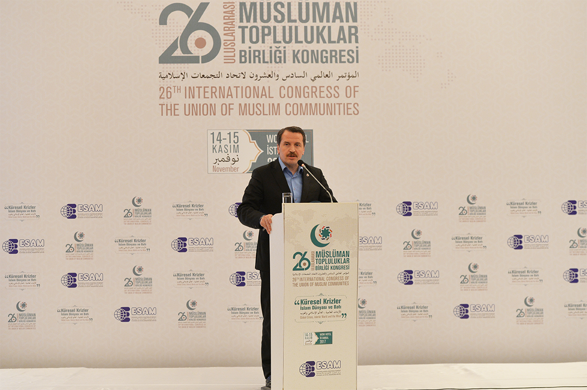 ESAM tarafından düzenlenen ve İslam Dünyası’nın temsilcilerini bir araya getiren 26. Uluslararası Müslüman Topluluklar Kongresi, İstanbul’da yoğun bir katılımla başladı. Programa Memur-Sen Genel Başkanı Ali Yalçın, Memur-Sen Genel Başkan Yardımcısı Levent Uslu, Hak-İş Genel Başkanı Mahmut Aslan, Saadet Partisi Genel Başkanı Temel Karamollaoğlu, Cansuyu Derneği Genel Başkanı Mustafa Köylü, İslam ülkelerindeki hareketlerin temsilcileri ve çok sayıda davetli katıldı.