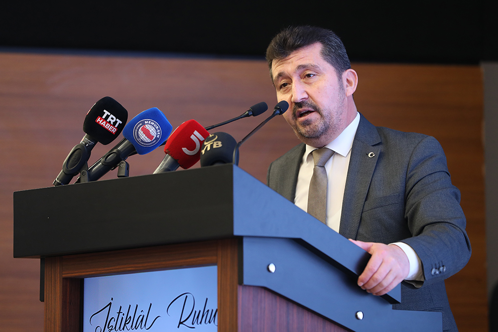 Genç Memur-Sen Başkanı Mustafa Başkara da konuşmasında İstiklal Marşı’nın neşet ettiği iklimi işaret etti, Milli Marşımızı cihanşümul bir medeniyetin, onurunu, sömürgeci işgalcilere karşı nasıl koruduğunun bir vesikası olduğunu belirtti, “İstiklal Marşı sözcüklerin Kur’an Işığında ruha büründürüldüğü bir bağımsızlık manifestosudur” dedi. Genç Memur-Sen olarak Kudüs’e sahip çıkmaya devam edeceklerini vurguladı.