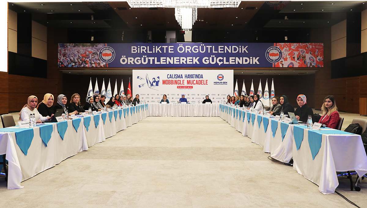 Memur-Sen Kadınlar Komisyonu tarafından düzenlenen Çalışma Hayatında Mobbingle Mücadele çalıştayı Memur-Sen Genel Merkezi’nde gerçekleştirildi. Alanında uzman kadın akademisyenlerin katıldığı çalıştayda kadın çalışanların karşılaştığı sorunlar ve mobbingle mücadele konusu masaya yatırıldı.