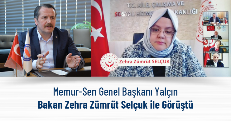 Memur-Sen Genel Başkanı Ali Yalçın; Aile, Çalışma ve Sosyal Hizmetler Bakanı Zehra Zümrüt Selçuk ile telekonferans aracılığı ile görüştü. Görüşmede kamu görevlilerin salgın sürecindeki beklentileri ve atılabilecek adımlar ele alındı.