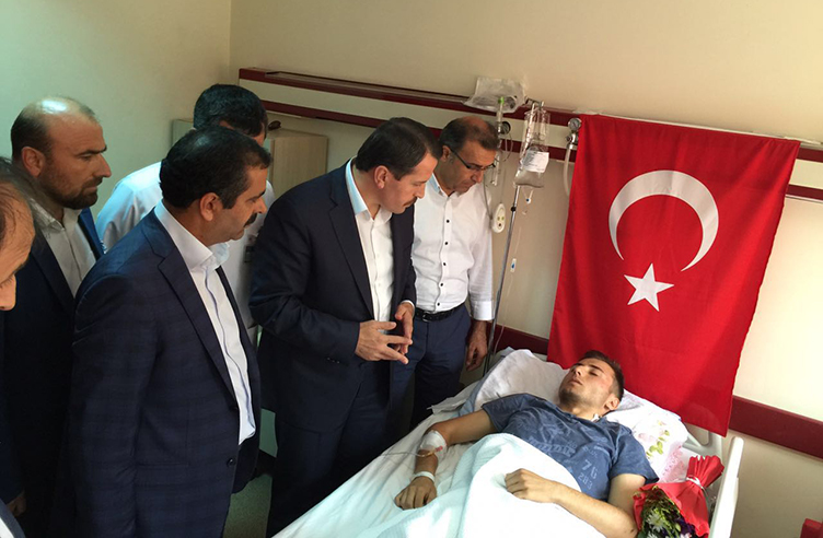 Yaralı vatandaşlarla bir süre sohbet eden Yalçın, doktorlardan yaralıların sağlık durumları hakkında bilgi aldı. Terör Örgütü FETÖ tarafından yapılan hain darbe girişiminin milletin dik duruşu ile alt edildiğini belirten Yalçın, “Vatandaşlarımız, canı pahasına bu girişime karşı kendisini namlunun önüne attı. Bu inanç hain darbe girişimini yerle bir etti. Millet iradesine sahip çıkarak hain planı bozdu” şeklinde konuştu.