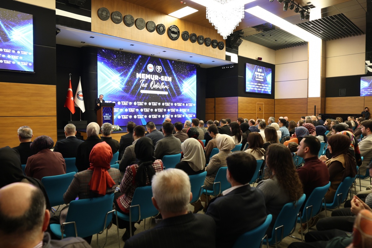Ödül töreninde konuşan Genel Başkan Ali Yalçın; Memur-Sen’in 11 hizmet kolu sendikasıyla kamu görevlilerinin sorunlarını çözmek, hak ve menfaatlerini geliştirmek için çok yönlü bir mücadele yürüttüğünü belirterek, “Kamu görevlilerinin emeğini büyütmek, haklarını korumak ve geliştirmek için birçok kulvarda ter akıtıyoruz” dedi.