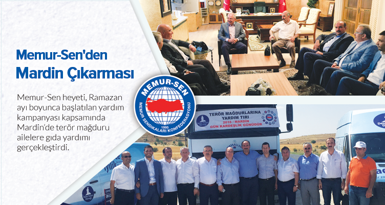 Memur-Sen Konfederasyonu ve Deniz Feneri Derneği işbirliği ile başlatılan yardım kampanyası hız kesmeden sürüyor. Memur-Sen’in Ramazan ayı dolayısıyla başlattığı yardım seferberliği kapsamında Mardin’e giden Memur-Sen heyeti, terör mağduru ailelere 1 TIR’lık gıda yardımı gerçekleştirdi.