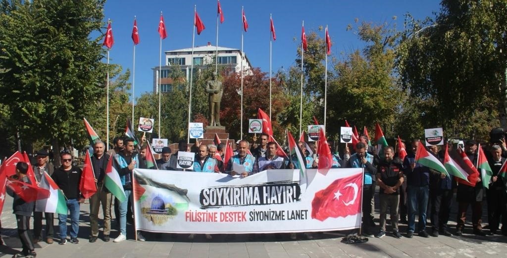 Türk ve Filistin bayraklarıyla, afiş ve dövizlerle meydanları dolduran Memur-Sen’liler Siyonist rejim aleyhine sloganlar atarak soykırıma karşı tepkilerini ortaya koydular.