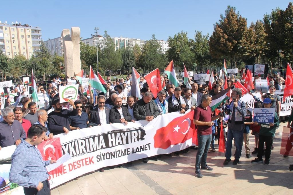 Ülkemizin dört bir köşesinde gerçekleştirilen “Soykırıma Hayır, Filistin’e Destek, Siyonizm’e Lanet” eylemlerinde genciyle-yaşlısıyla, kadınıyla-erkeğiyle meydanları dolduran binlerce Kudüs sevdalısı, havadan, karadan ve denizden abluka altına alınan, katledilen, su, gıda ve ilaç gibi en temel yaşam maddelerine dahi erişimi kesilen milyonlarca Filistinlinin işgale karşı olan haklı ve meşru mücadelesine destek vererek işgal rejiminin saldırılarını kınadı.