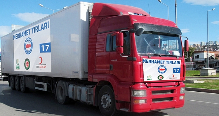 “Merhamet TIR`ları Yola Çıkacak, Hendekleri Aşacak, Bayırbucak`a Ulaşacak” kampanyası kapsamında Karaman, Adıyaman, Bolu, Denizli, Ordu ve Çorum`dan ilk yardım TIR`ları yola çıktı.