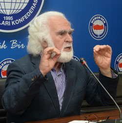 “Yerellikleri aşamamak gibi bir sorunumuz var” diyen Müftüoğlu, “Bu yüksek farkındalığa sahip olamamak demektir. Toplumsal kültürel ve siyasal alanda rol oynayanların yüksek farkındalığa sahip olması gerekiyor. Bu kişiler sıra dışı bir farkındalığa sahip olmalıdır. Büyük sürü her zaman yukarıdan yönetilir fakat farkında olanlar, yüksek farkındalıklı kimseler, ‘biz yönetilmeye müsait değiliz’ derler. Bizler bu farkındalıkla kendi tarihimizin nesnesi değil aktörü olmalıyız” ifadelerini kullandı.