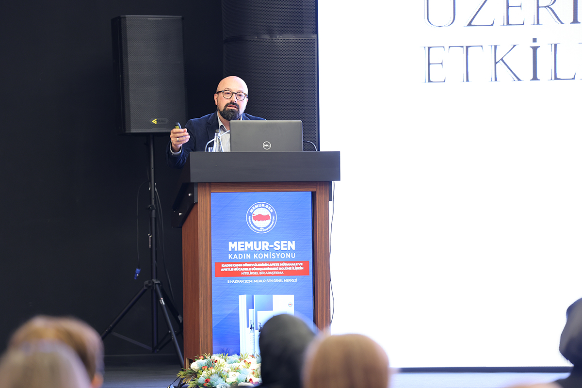 Prof. Dr. Emrah Akbaş ise “Kadın Kamu Görevlilerinin Afete Müdahale ve Afetle Mücadele Süreçlerindeki Rolüne İlişkin Niteliksel Bir Araştırma” raporunun içerik özetine ilişkin bir sunum gerçekleştirdi.