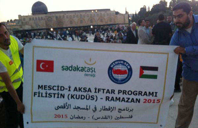 Memur-Sen'in paylaşma ve kardeşlik ayında “Mazlumlar İçin İnfak Vakti” sloganıyla başlattığı kampanya çerçevesinde Mescid-i Aksa'da düzenlediği iftar programına binlerce Filistinli Müslüman katıldı.