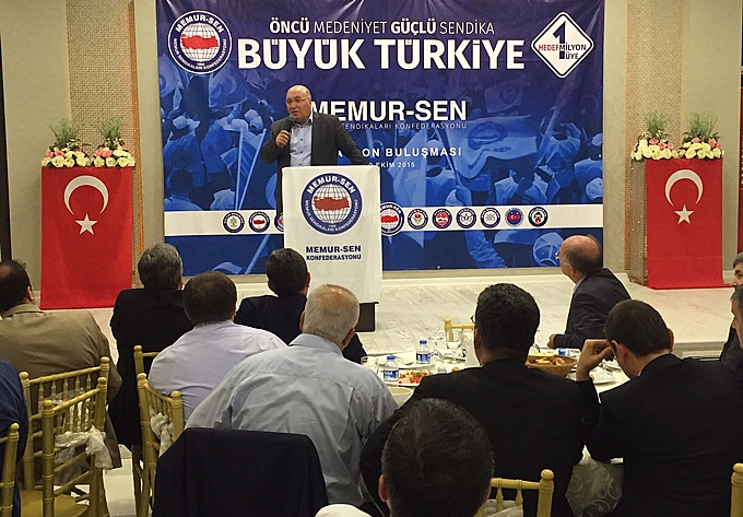 Programın konukları arasında bulunan Ak Parti MKYK üyesi ve Trabzon Milletvekili Süleyman Soylu da konuşmasında son dönemde yaşanan gelişmeleri değerlendirdi. Soylu konuşmasını şöyle sürdürdü. `Türk demokrasi tarihine bakıldığında belli tarihlerin birer turnusol kâğıdı gibi önümüzde durduğunu görürüz. 12 Mart, 27 Mayıs, 12 Eylül, 17-25 Aralık. Bu tarihler bizlere kimin ne olduğunu göstermesi bakımında son derece önemli tarihler. Bakın Türkiye son 13 yıllık Ak parti iktidarında başbakana yazar kasa fırlatılmasına tanık oldu. Artık uzaya uydu fırlatır konuma geldik. Halkımız bunları görüyor ve tercihini ona göre kullanıyor. Bundan önce yapılan 7 Haziran seçimlerinde bize bir uyarıda bulundu seçmenler. Biz size tek başına iktidar vermiyoruz. Bir araya gelin hükümet kurun ve ülkeyi koalisyonla yönetin, diye. Ama siyasi partilerin hiçbiri bizimle samimi bir şekilde masaya oturmadı. Biz, HDP dışındaki bütün siyasi partilerle koalisyona şartsız kapılarımızı açarken, onlar bize olmadık şartlar öne sürdü. Maksatları hükümete ortak olmak değil, görevden kaçmaktı. Çünkü bunların geçmişteki iktidar tecrübeleri halkımız açısından hayal kırıklıkları ile doludur. İnşallah 1 Kasım seçimlerinde halkımızın teveccühü ile yeniden iktidar olacağız ve sizin sloganınızda da olduğu gibi büyük Türkiye hedefimize, 2023 hedefimize yol alacağız. Halkımıza güveniyoruz, halkımızın desteğini bekliyoruz, aldığımız destek oranında da hizmet etme gücümüzü kendimizde bulacağız. Değerli Memur-Sen ailesi, programınızın hayırlara vesile olması dileklerimle misafirperverliğinize teşekkür ediyorum`` dedi.