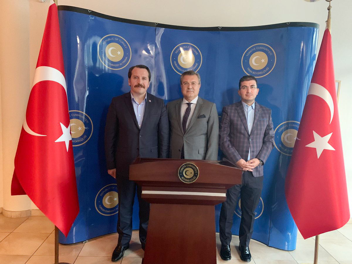 Genel Başkan Ali Yalçın daha sonra Tiran Büyükelçisi Murat Ahmet Yörük’ü makamında ziyaret ederek bilgi alışverişinde bulundu.