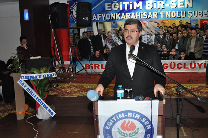 Memur-Sen ve Eğitim-Bir-Sen Genel Başkanı Ali Yalçın, Eğitim-Bir-Sen Afyonkarahisar 1 No’lu Şube’nin düzenlediği ‘Birlik, Beraberlik ve Kardeşlik’ toplantısında teşkilatla bir araya geldi. Yoğun katılımla gerçekleşen toplantıda konuşan Yalçın, “Eğitim programları, birey ve toplum için öncelikler ve değerler sistemi teklif eder, bu teklifin hayat bulması için en etkili araçları ve yöntemleri belirler; gelecekte ülkenin yönetiminin devredileceği yeni nesillerin, okul ortamında ve öğretmen rehberliğinde sağlam, özgün kimlik ve kişilik inşa etmeleri için en uygun iklimin oluşumunu da içerir. Sonuçta varılacak yer, bireyin kendini gerçekleştirdiği, toplumun refah, huzur ve mutluluk içinde hayatını sürdürebildiği bir refah toplumunun oluşturulmasıdır” ifadelerini kullandı.