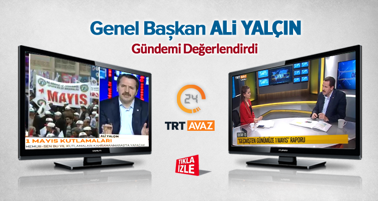 Memur-Sen Genel Başkanı Ali Yalçın, TRT-Avaz ve 24 TV canlı yayınlarında 1 Mayıs gündemini değerlendirdi. 1 Mayıs`ı bayram havasında kutlayacaklarını vurgulayan Yalçın, "1 Mayıs`ta emeğin kahramanlarını, Kahramanmaraş`a davet ediyoruz" dedi.