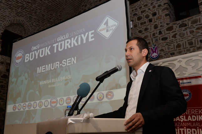 Memur-Sen Manisa İl Temsilcisi Mehmet Emin Sofuoğlu yaptığı konuşmada, Manisa`da teşkilat olarak gece gündüz demeden çalıştıklarını, 1 Milyon Üye Hedefine ulaşmak için büyük bir özveri ortaya koyduklarını söyledi.
