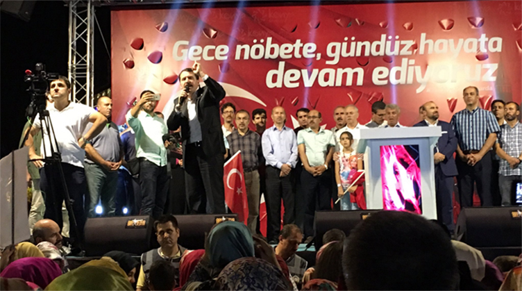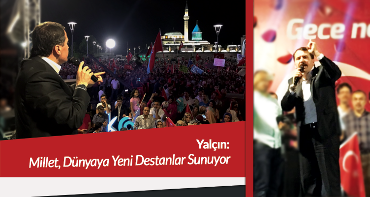 “Ülkede her 10 yılda bir darbe girişimi denendi” diyen Yalçın, bununla yetinmediklerini vurgulayarak şöyle devam etti: “Farklı kurumlar da kendilerince sözde darbe girişiminde bulundular. Milleti, darbelerle ve girişimleriyle bunalttılar. Onun için millet, darbe parantezini kendisi kapattı. Millet, üzerine alçak uçuş yapanlara karşı tankın önüne çıkarak, cesaretle tanka meydan okuyarak, mermiye kafa atarak, destan yazdı. 13 gündür de meydanlarda. Her gün meydanları birlikte tutarak, dünyaya yeni destanları birlikte sunmuş oluyoruz.”
