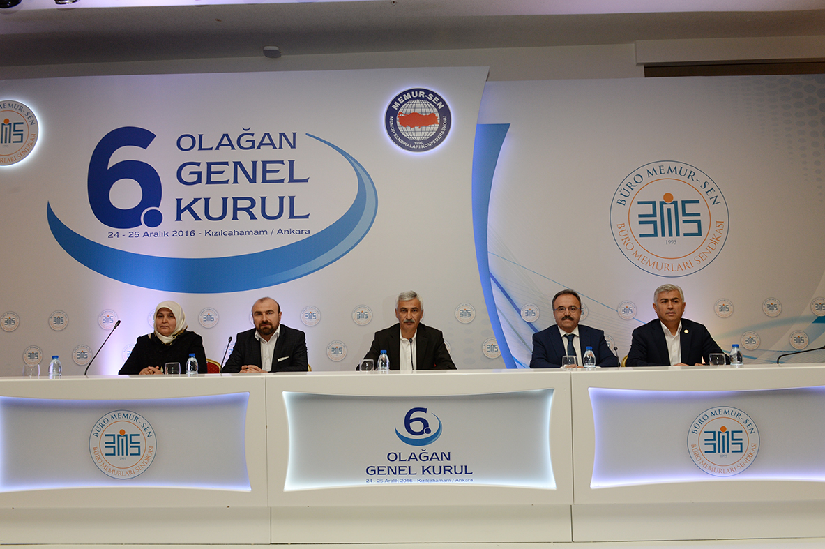 Memur-Sen Konfederasyonu’na bağlı Büro Memur-Sen 6. Olağan Genel Kurulu Ankara’da yapıldı. Genel Kurula Memur-Sen Genel başkanı Ali Yalçın, Memur-Sen Genel Başkan Vekili Metin Memiş, Genel Başkan Yardımcıları Günay Kaya, Mehmet Emin Esen, Levent Uslu, Eğitim-Bir-Sen Genel Başkan Vekili Latif Selvi, Bayındır Memur-Sen Genel Başkanı Soner Can Tufanoğlu, Ulaştırma Memur-Sen Genel Başkanı Can Cankesen, SGK Yönetim Kurulu Üyesi Ahmet Özer, SGK Daire Başkanı Uğur Ünalan ve Memur-Sen'e bağlı sendikaların yönetim kurulu üyeleri ile delegeler katıldı.